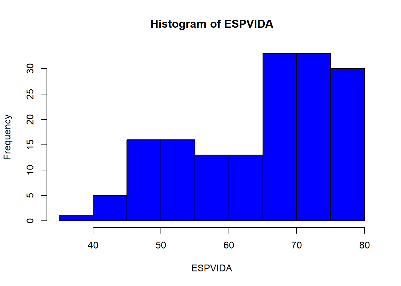 hist(ESPVIDA, col="blue")