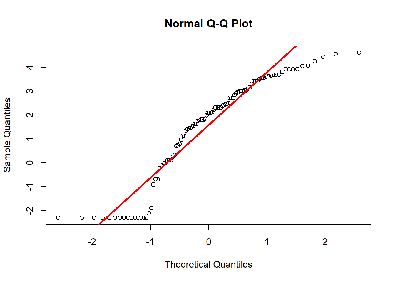 qqline(log(datadiners$diners +.1),col="red", lwd=3)
