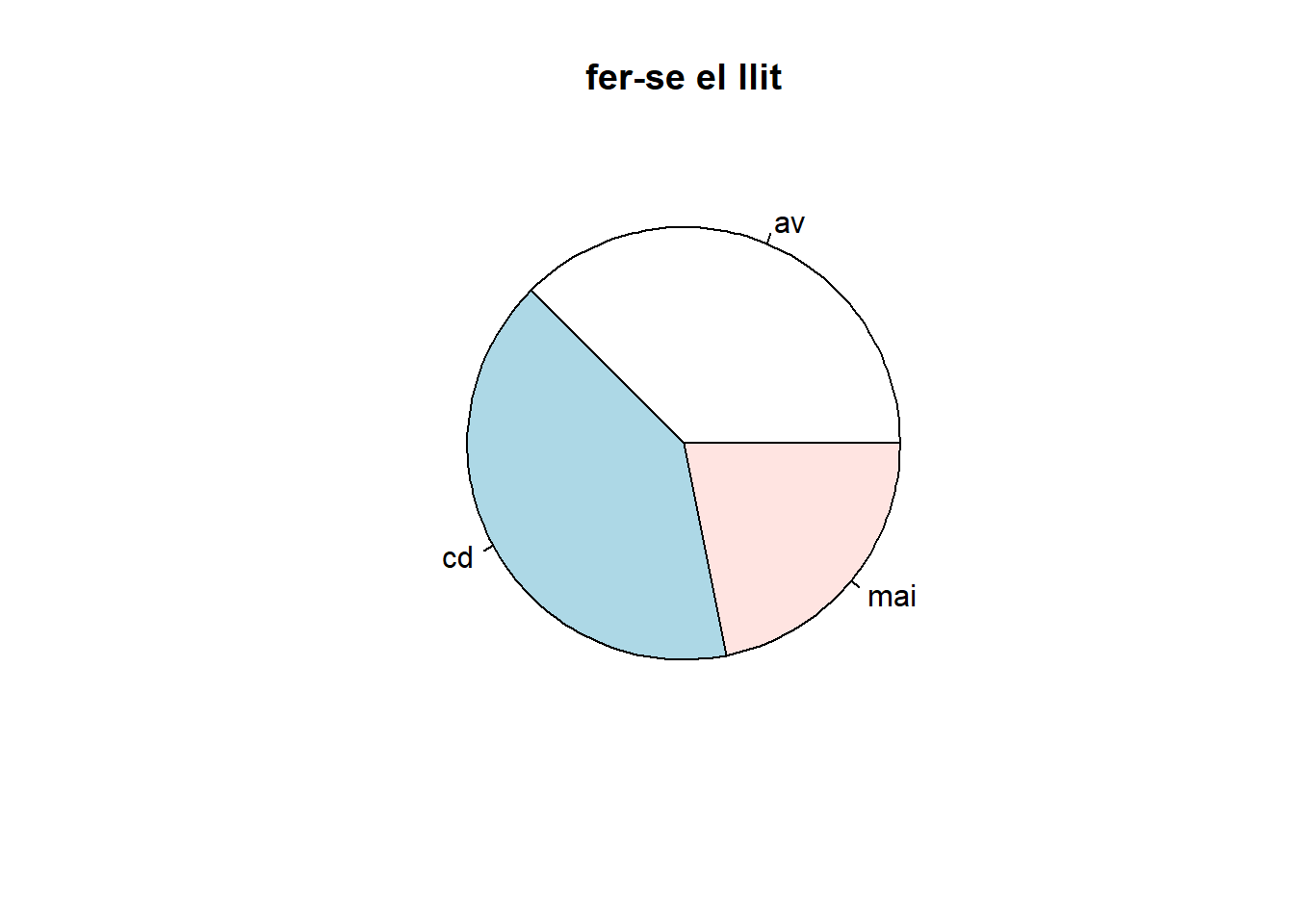 pie(table(data[,4]), main="fer-se el llit")
