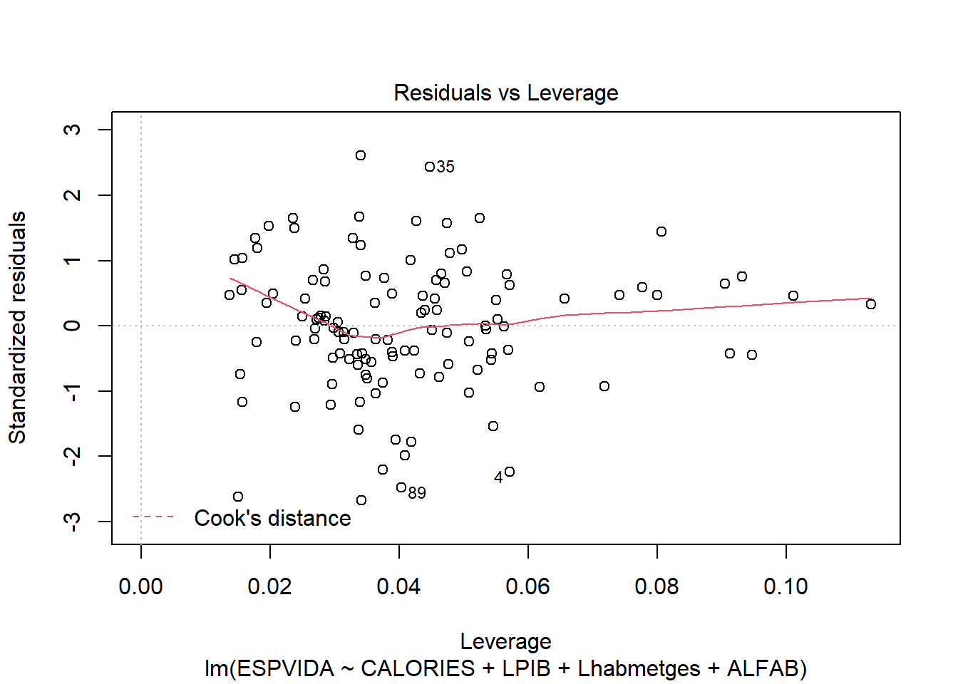 Residus estandarditzats vs leverage