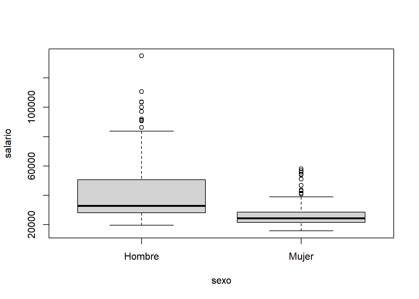 boxplot(salario ~ sexo, data=d)